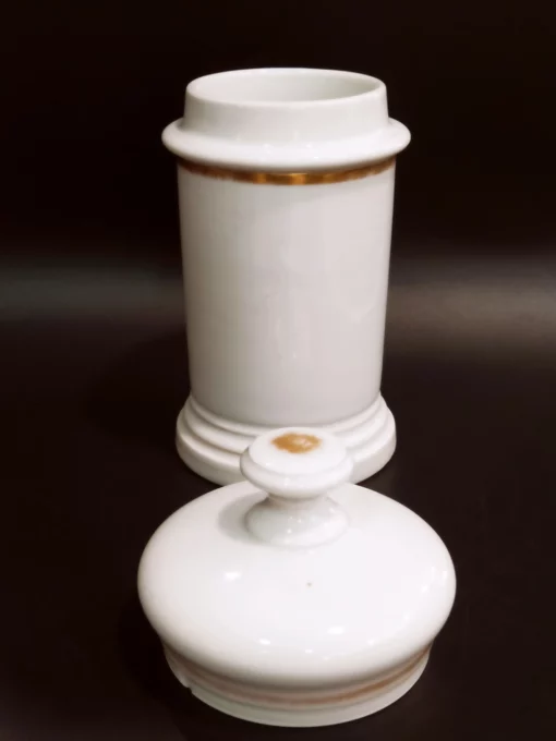 Albaredo Farmacia de porcelana es una pieza única que añade un toque de elegancia y sofisticación a cualquier espacio. Hecha a mano, con detalles cuidadosamente elaborados, esta pieza es más que un simple accesorio decorativo; es un reflejo de la exclusividad y la distinción. Ideal para coleccionistas y amantes del estilo vintage, su acabado suave y translúcido proporciona una sensación de pureza y refinamiento.