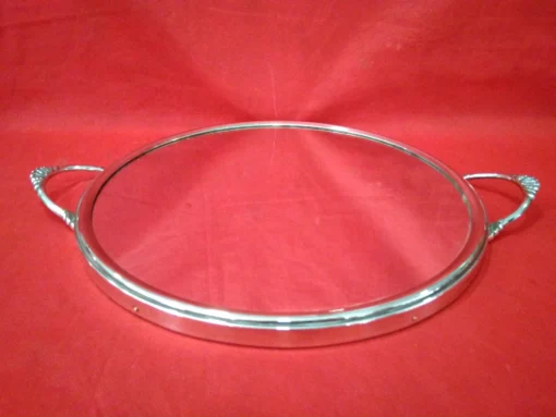 Añade un toque de distinción a tu hogar con esta bandeja redondeada de metal plateado y fondo espejado, un artículo de excelentes calidades. Su diseño elegante y versátil la convierte en la opción perfecta tanto para decorar como para servir con estilo. El reflejo de la superficie espejada crea un efecto visual impresionante, ideal para mesas de centro, tocadores o recibidores. Fabricada con materiales de alta calidad, es resistente y duradera, asegurando su belleza y funcionalidad por años.