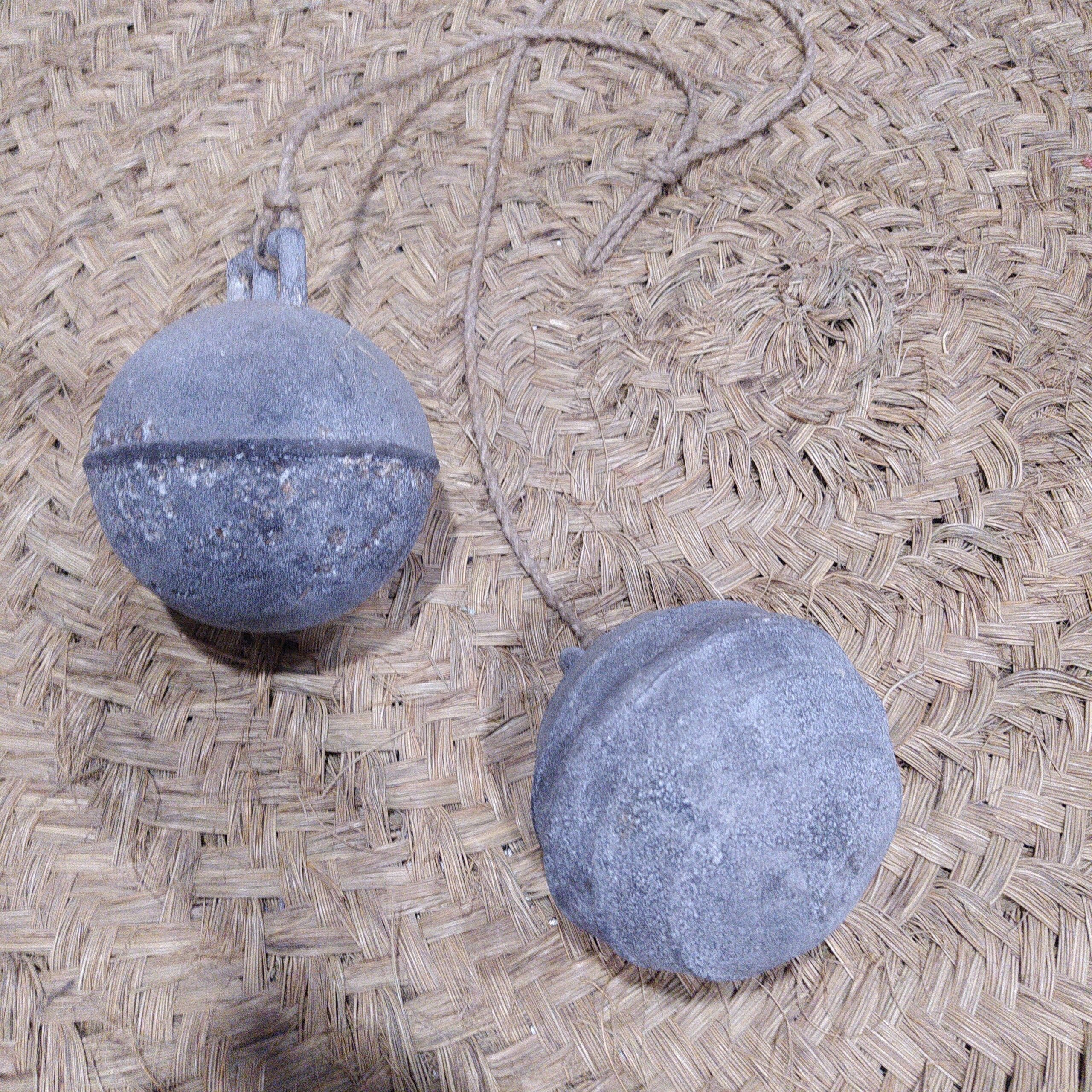 Estas antiguas boyas de barco están elaboradas en calamina, un material resistente que garantiza su longevidad y durabilidad. Con medidas de 17 cm, son ideales para coleccionistas de objetos náuticos y entusiastas de la decoración marítima vintage.