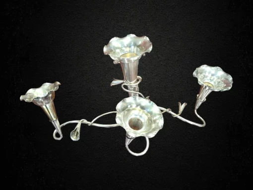 ¡Agrega elegancia y encanto a tu mesa con nuestro candelabro centro de mesa francés! Hecho de metal plateado, este candelabro es perfecto para añadir un toque sofisticado a tus decoraciones de mesa. ¡Ilumina cualquier ocasión con este impresionante accesorio!, Medidas 49 x 32 X H23 cm.