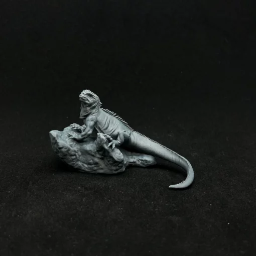 La Pose del Modelo representa un ejemplar de Iguana marina soleándose para alcanzar la temperatura adecuada después de haberse sumergido en busca de las algas de las que se alimenta.